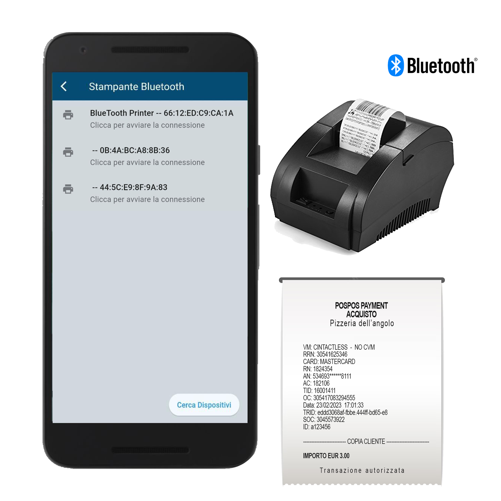 Con PosPos hai due possibilità di scelta: puoi inviare elettronicamente la ricevuta o la fattura all’indirizzo email del tuo cliente oppure puoi stampare la ricevuta collegando una qualsiasi stampante bluetooth al tuo smartphone. È semplice e veloce.